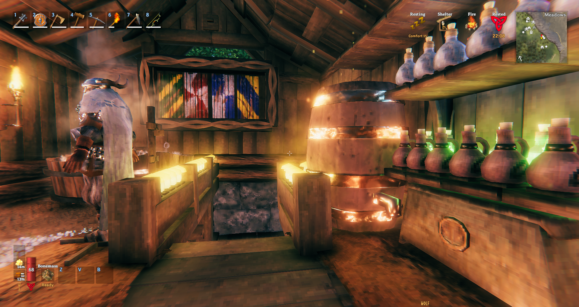 발헤임은 보스 순서대로 장비를 파밍하게 되어 있어서, 이미 보스를 3번째 이상 잡고 있으면 신규 캐릭터로 따라잡으려면 좀 불편하다.
